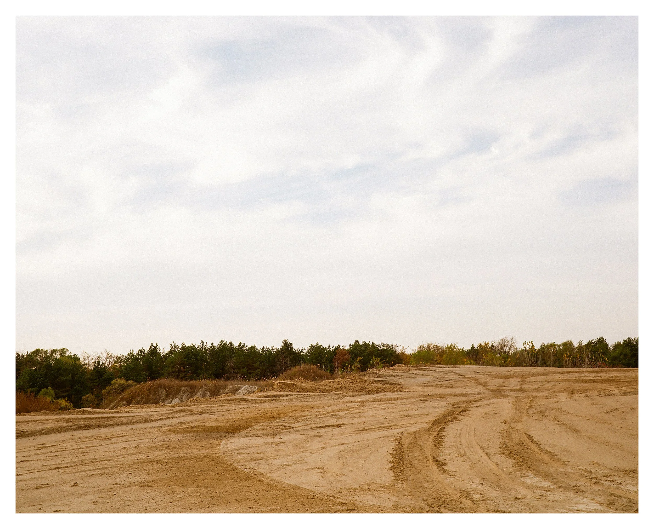 The third peak of my experience within the Ordered World in 2024—the third time that I was pulled under by waves of Transcendence to a place beyond my imagining—came unexpectedly at the end of October, following a productive couple of months after I finished shooting What My Left Hand is Doing in August. I had come away from that body of work reinvigorated, ready to spend the rest of my year seeing what new things I could find and do, which turned out to be both new places (Fort Wayne, Three Rivers) and new techniques (using manual flash, trying out the new Harman Phoenix)! Things were going well, and then one day towards the end of the month I was driving south out of South Bend to pick up a dining room table when a seemingly abandoned quarry caught my eye just past the exit ramps to the bypass. Since I was on a mission, I filed the location away in my mind for another time, and returned a couple days later after work when the light seemed right. Something was calling me to this place, something more than what I had felt in the preceding months, and I had to answer the call in the way I know best: with my camera and a couple rolls of film.